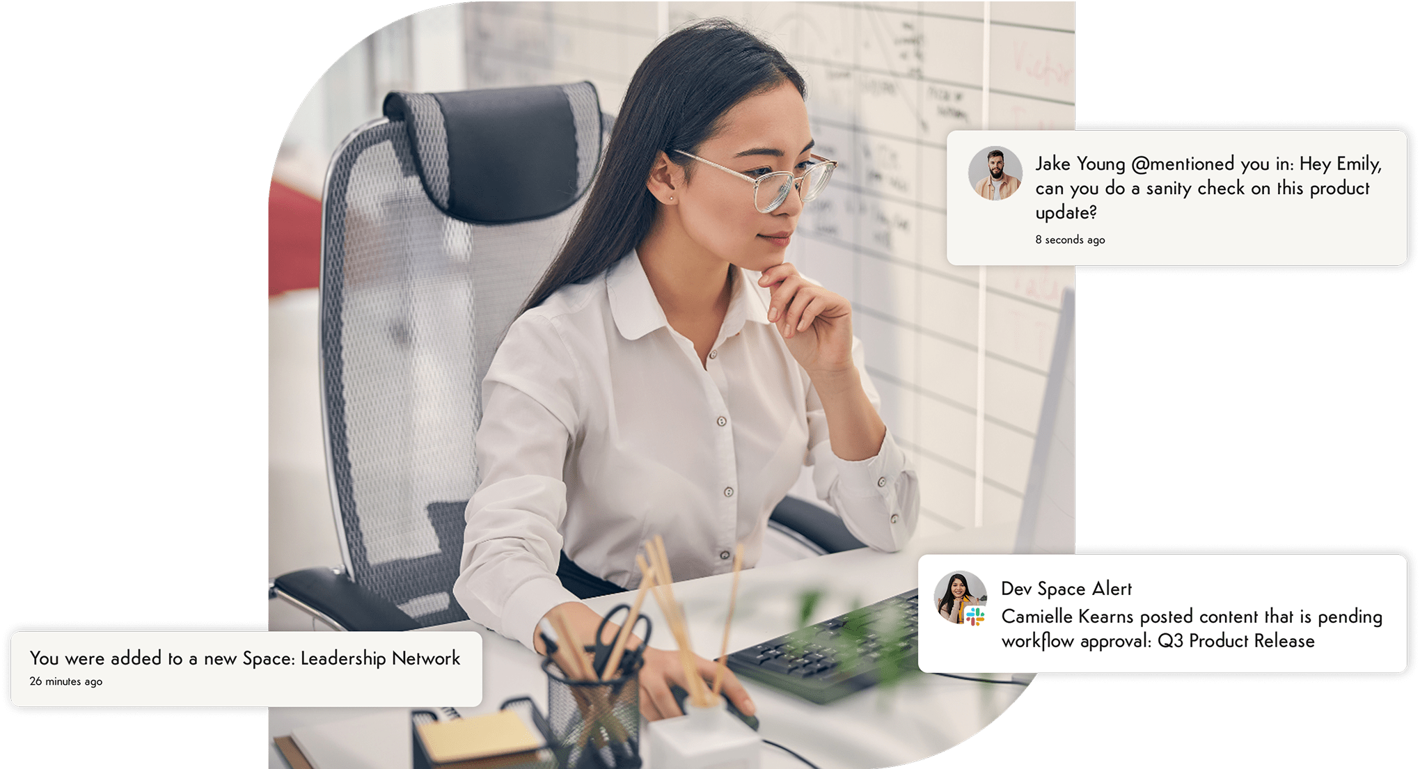 From flexible announcements and personas to group tagging and more, you can keep everyone aligned and connected.