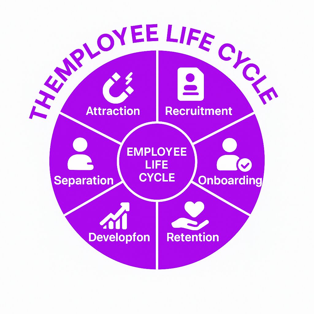 The employee life cycle begins before a candidate applies for a job. Attraction refers to how a company positions itself as an employer. Organizations with a strong reputation, clear values, and positive workplace culture attract better talent.
