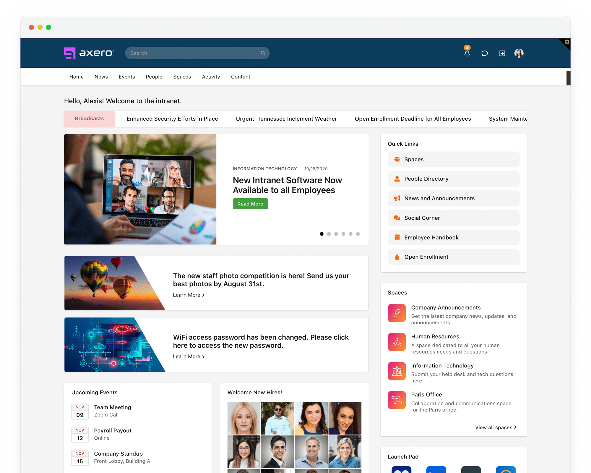 Axero is designed to be your one-stop shop for all things social and knowledge management. Book a demo with us today and find out how we can help you create an online hub that is truly the heart of your business.