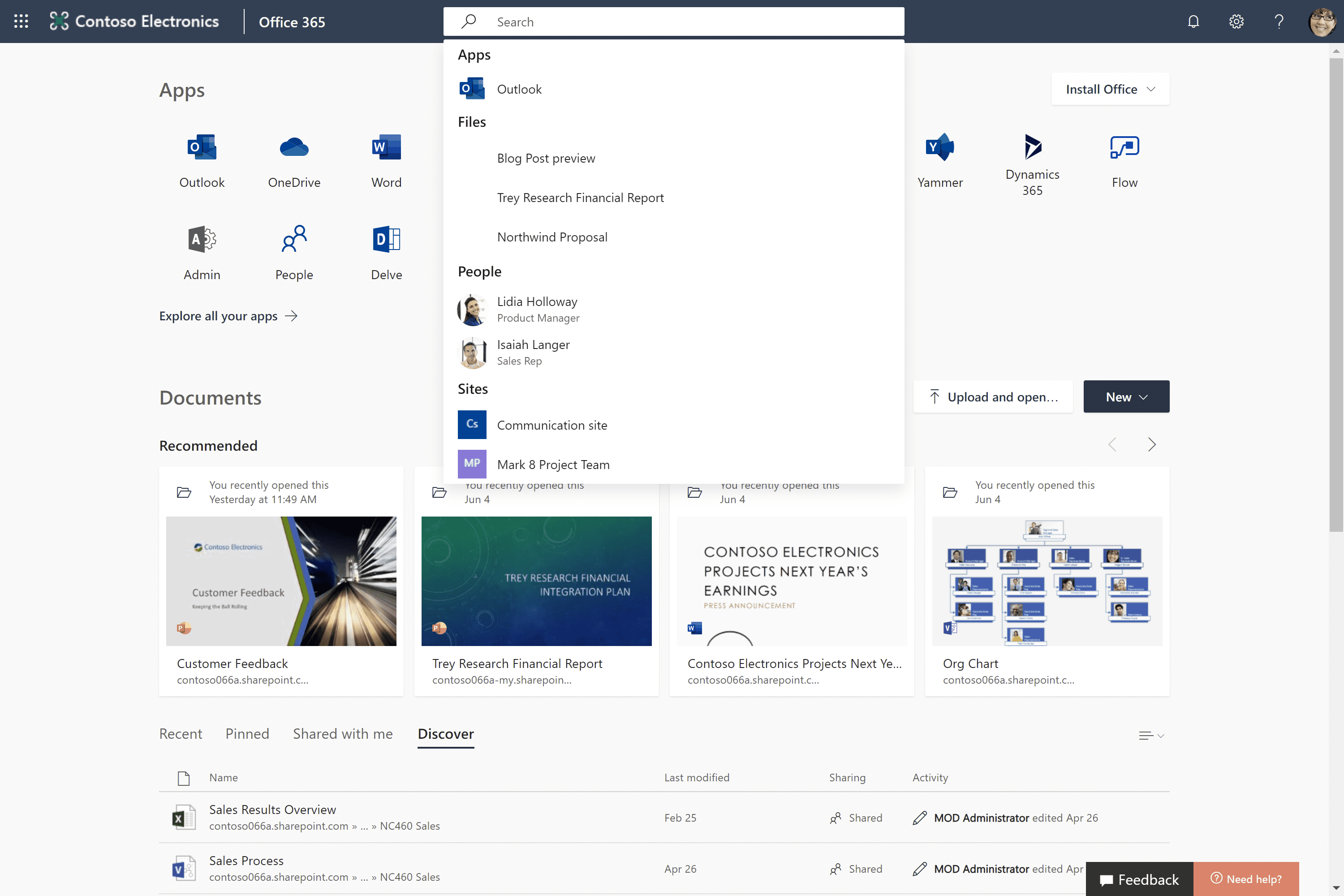 Key features of Microsoft Search