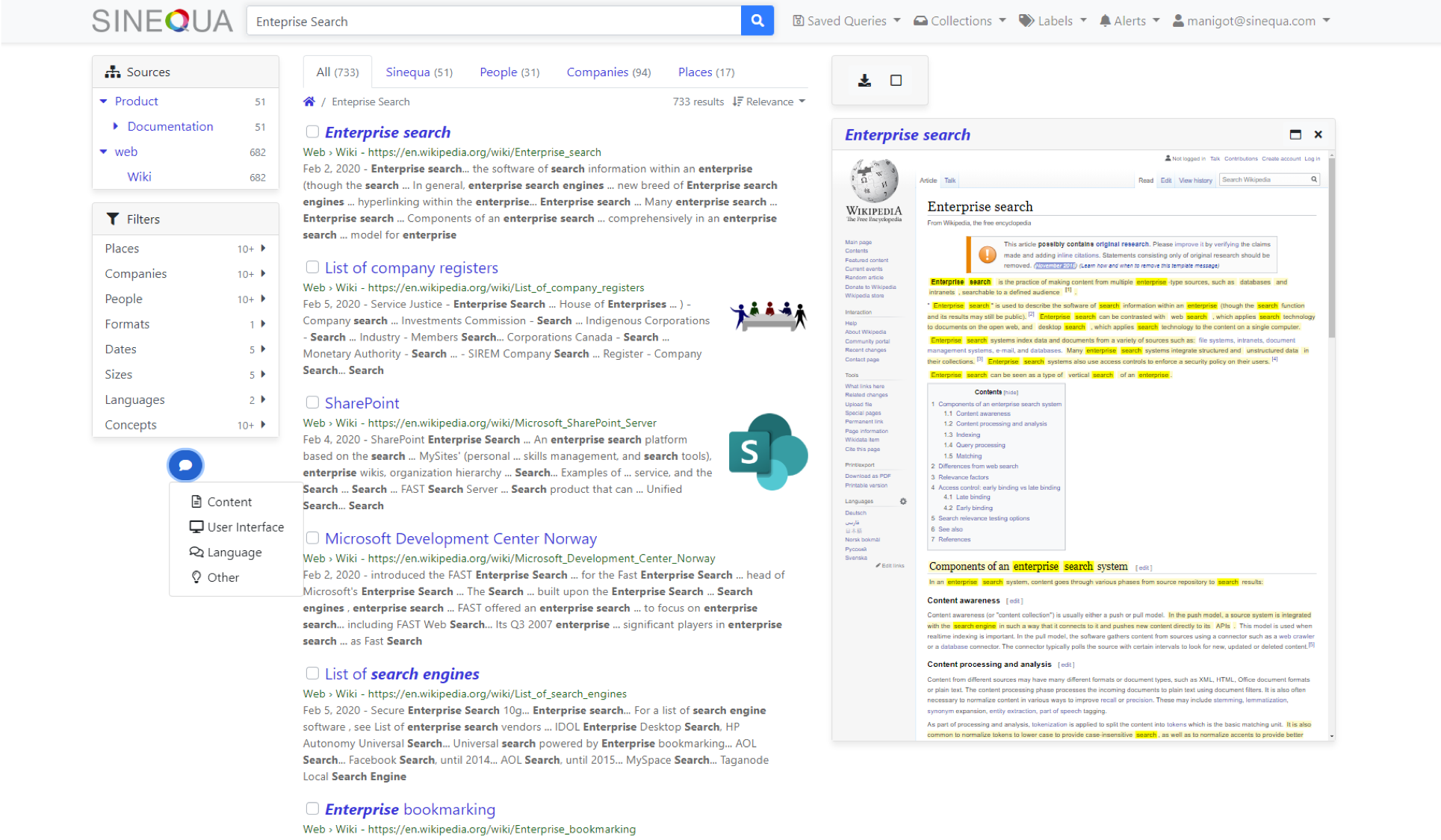 Sinequa offers AI-powered enterprise search with a focus on knowledge discovery and analytics. It combines traditional search with natural language processing to surface insights from structured and unstructured data.