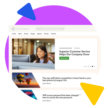 Fully customizable layouts built with drag-and-drop deliver a cohesive, on-brand experience that keeps everyone aligned. Upgrade available for a white-label mobile intranet app on both iOS and Android.