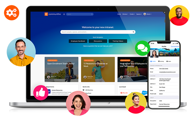 Connects employees and encourages relationship-building through directories, profiles, and interest groups.