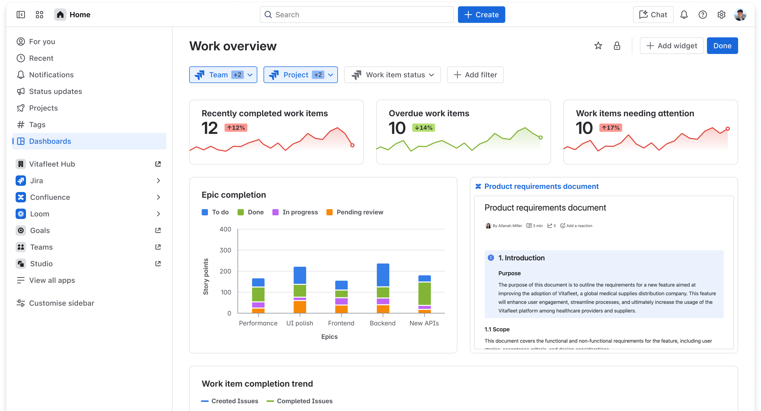 Atlassian Work Management brings together planning, tracking, and collaboration tools designed to help large teams coordinate complex work. Built on the Atlassian ecosystem, it connects products like Jira, Confluence, and Trello to support structured workflows across technical and non-technical teams.