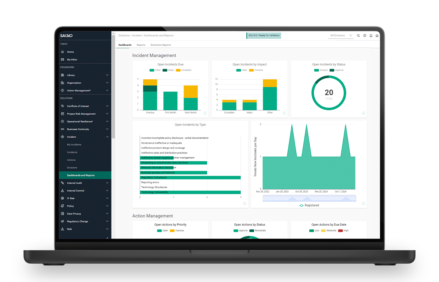 - Compliance analytics: Monitor trends and risk exposure through dashboards.