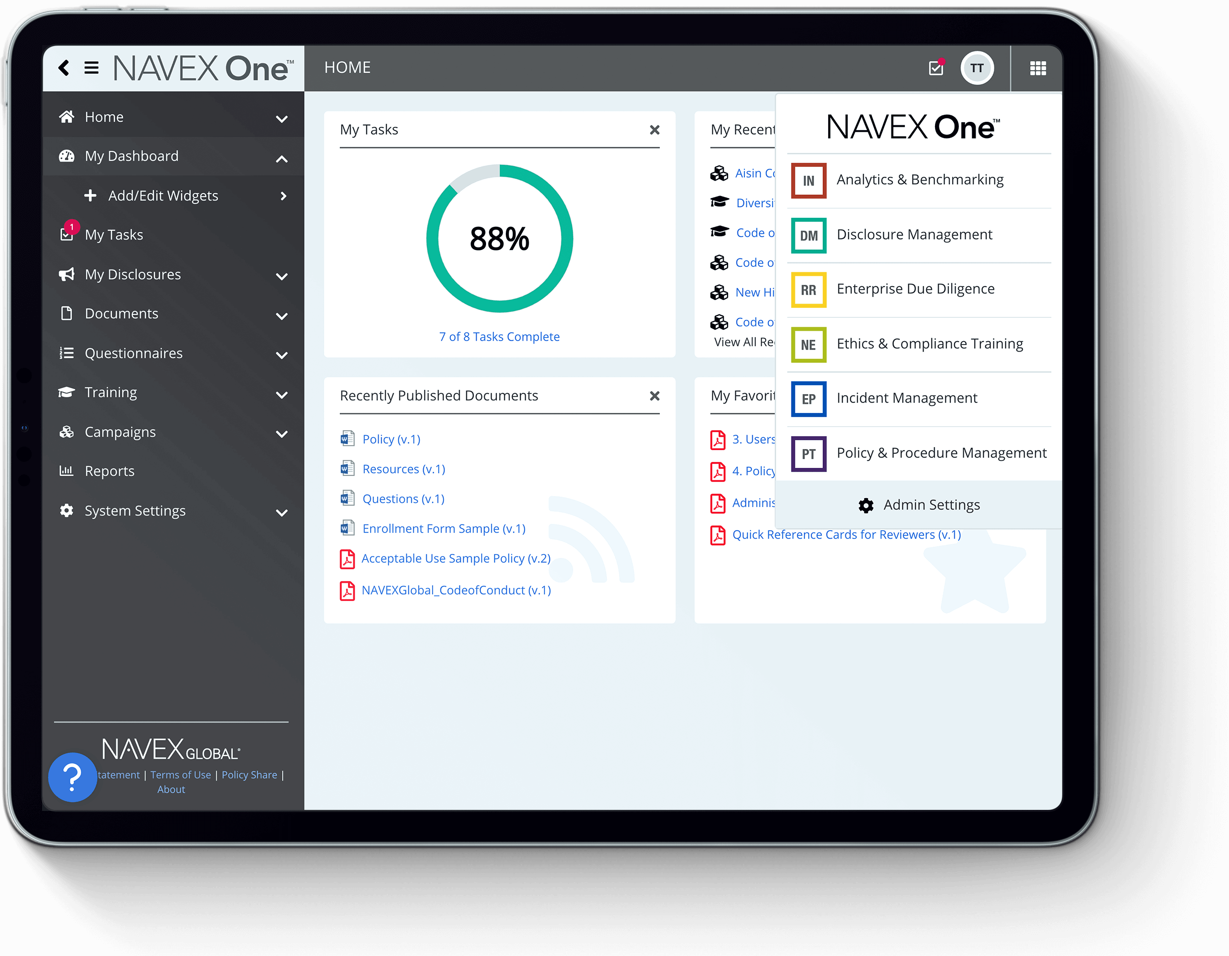 NAVEX One is a comprehensive compliance and ethics platform designed for organizations with formal governance programs and regulatory obligations. It supports policy management, training, incident reporting, risk assessments, and third-party compliance within a single ecosystem.