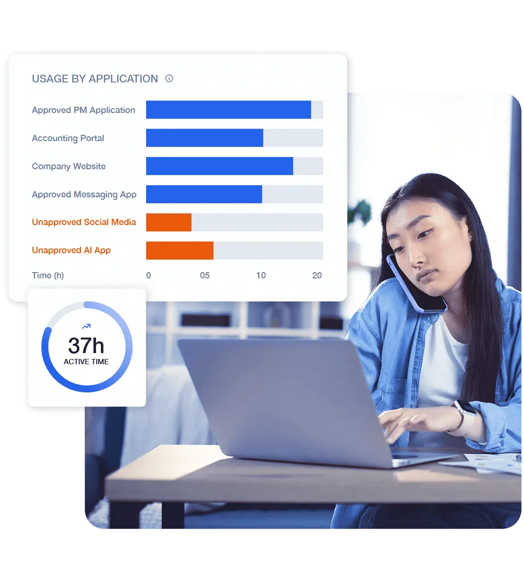 • Application and website analytics: Shows how digital tools impact focus and efficiency across teams.