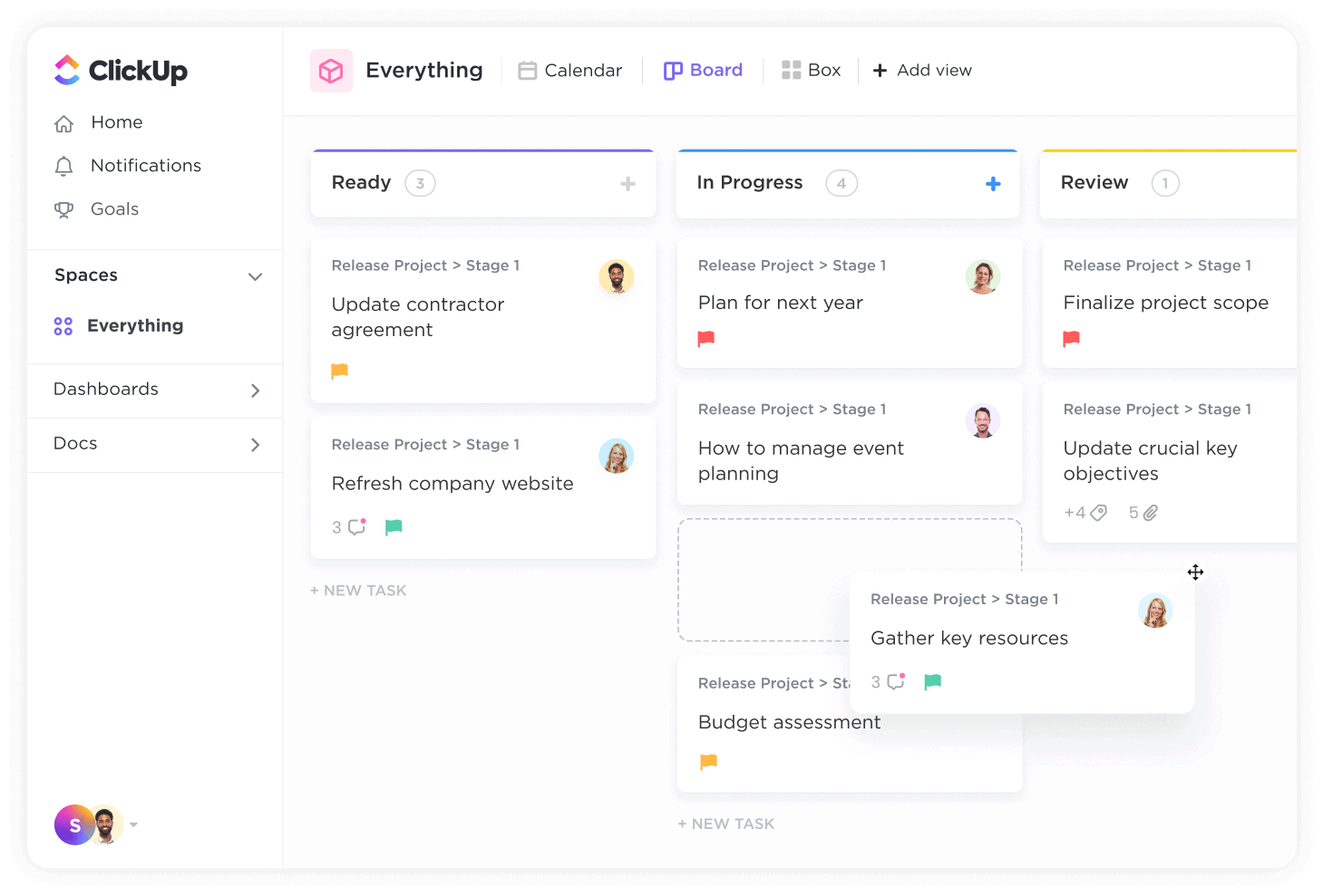 - All-in-one workspacg: Combines tasks, docs, and goals.