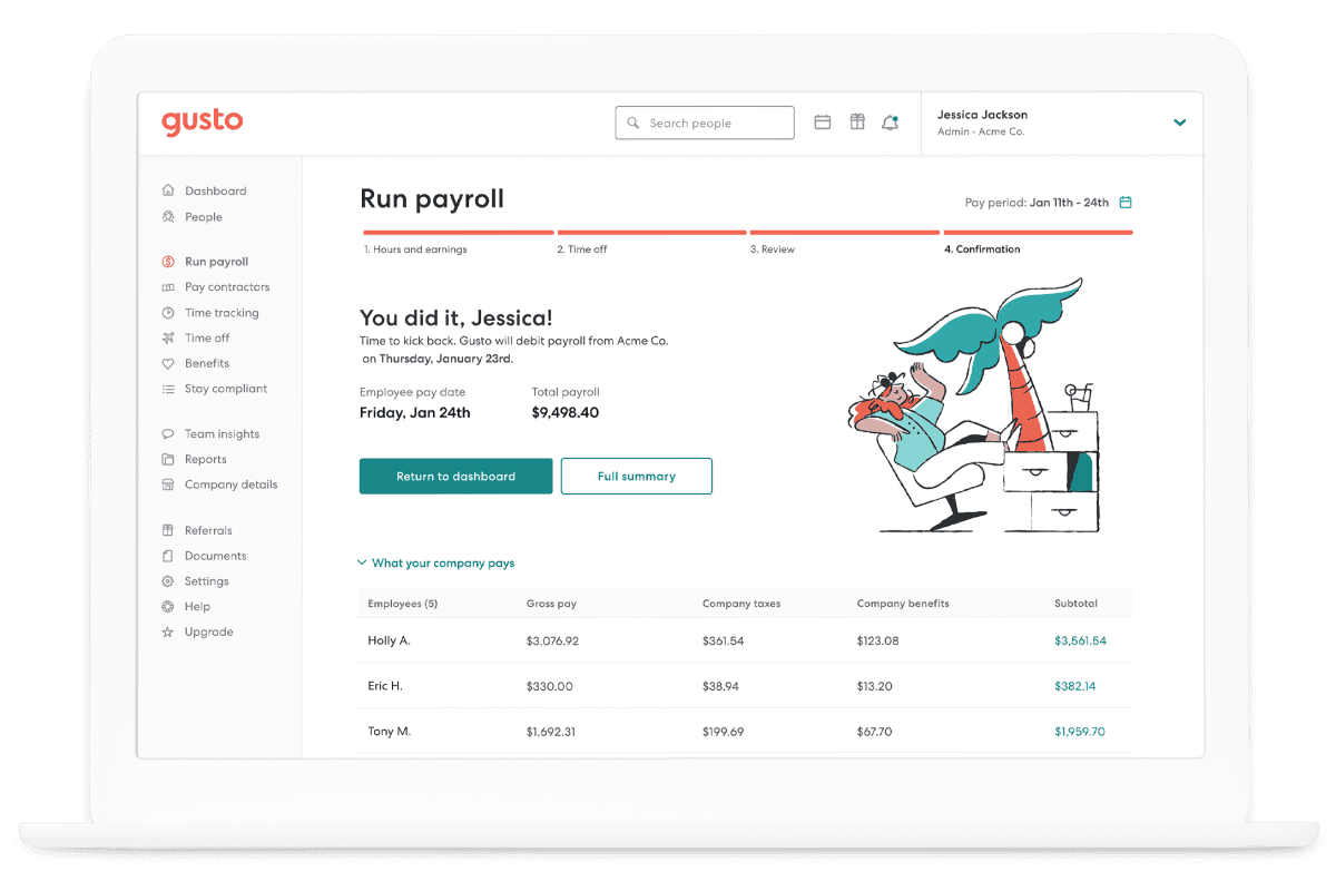 For People Ops teams, Gusto centralizes payroll, tax filings, benefits enrollment, and employee documentation. Automated processes reduce manual work and help teams stay compliant without deep HR expertise. Employees can access pay stubs, benefits details, and tax documents through a self-service portal.