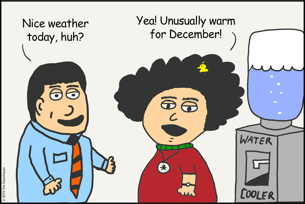 Water cooler chat, or water cooler talk, or water cooler conversation (whatever you want to call it), is what happens when colleagues take a break from work and socialize with each other. It’s a chance to let everyone reset by talking about less stressful things, like hobbies and personal interests—fun topics not associated with work.