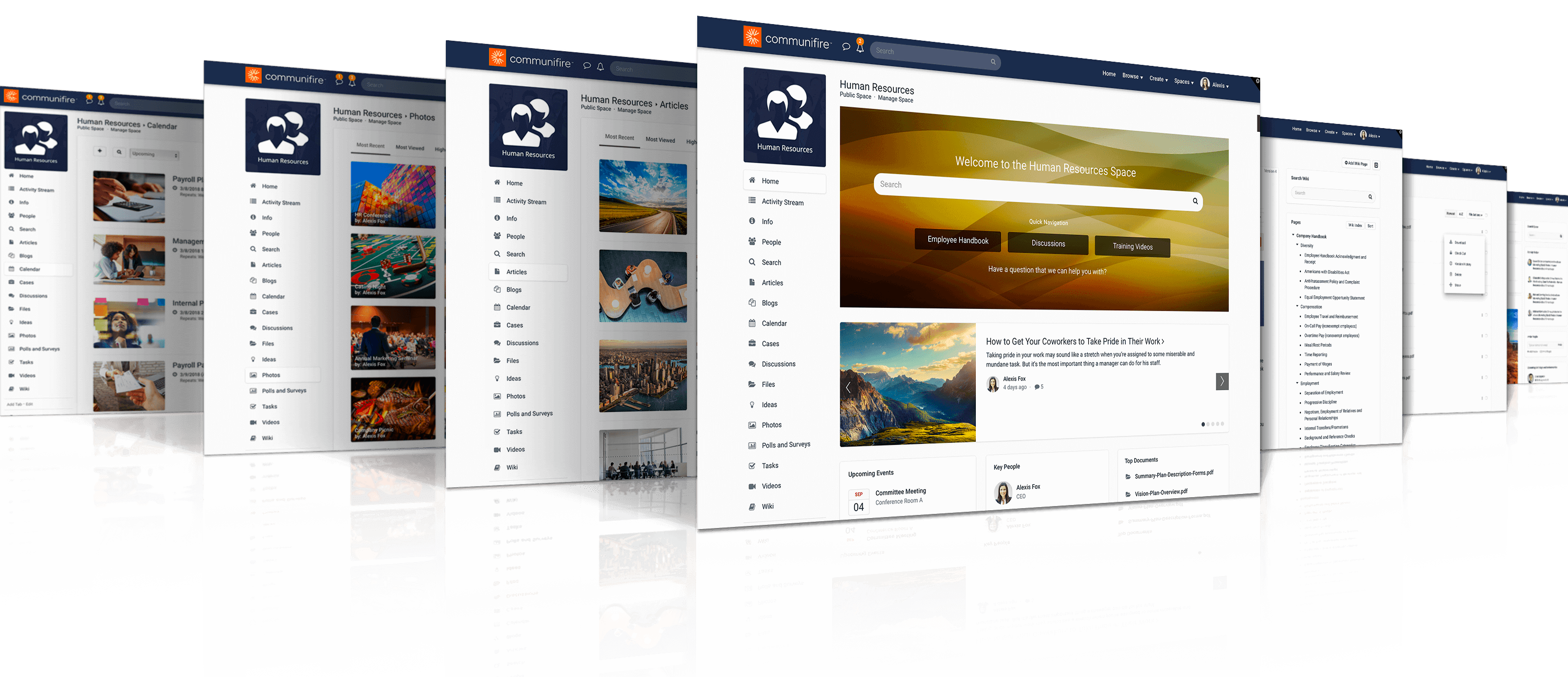 Create a space for each division in your business. Set one up for Human Resources to host company policy information. Give Marketing and Sales their own space to collaborate on leads.